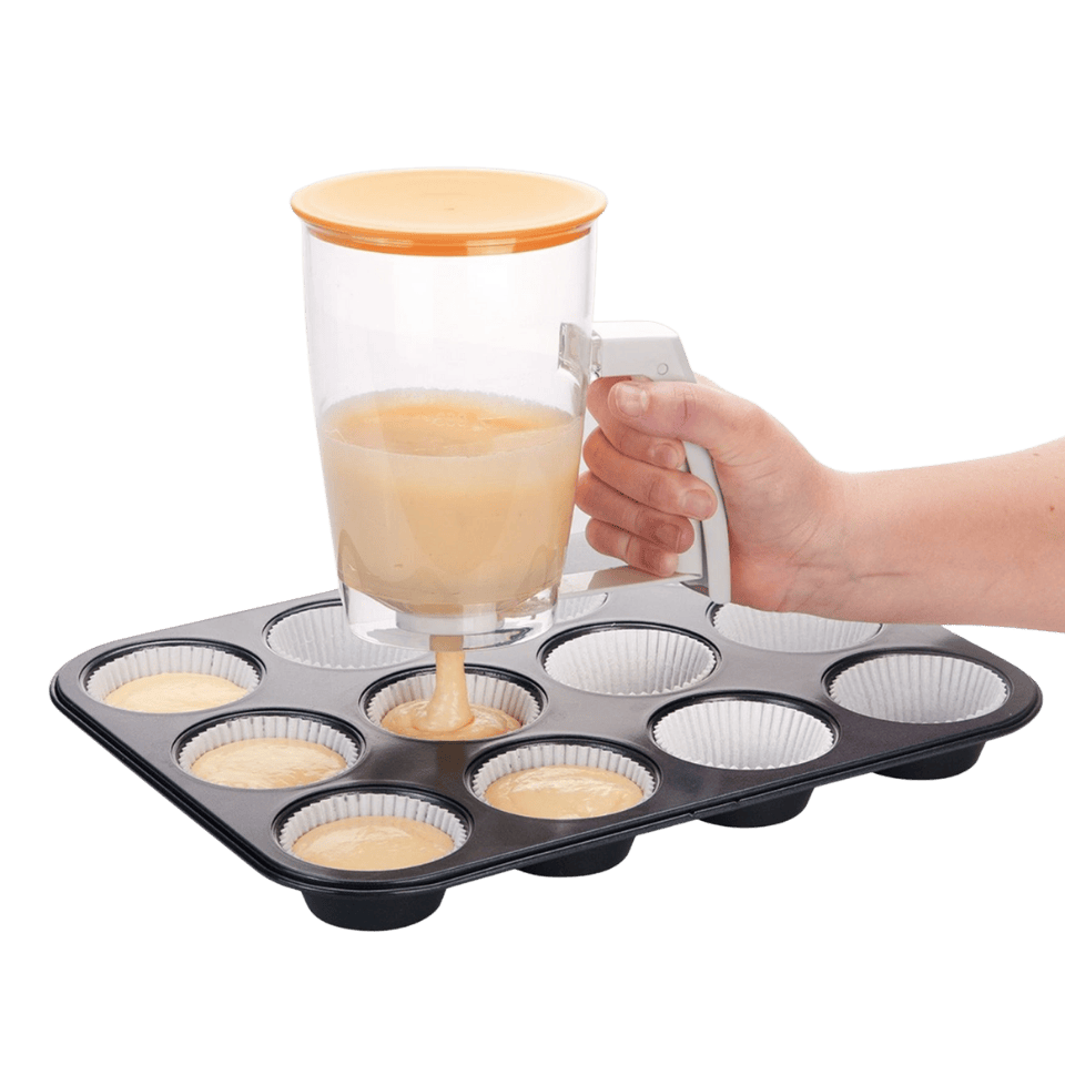 Sauberes, genaues und einfaches Dosieren des Teigs für Muffins, Cupcakes, Pfannkuchen, Waffeln und mehr – alles mit einer Hand!