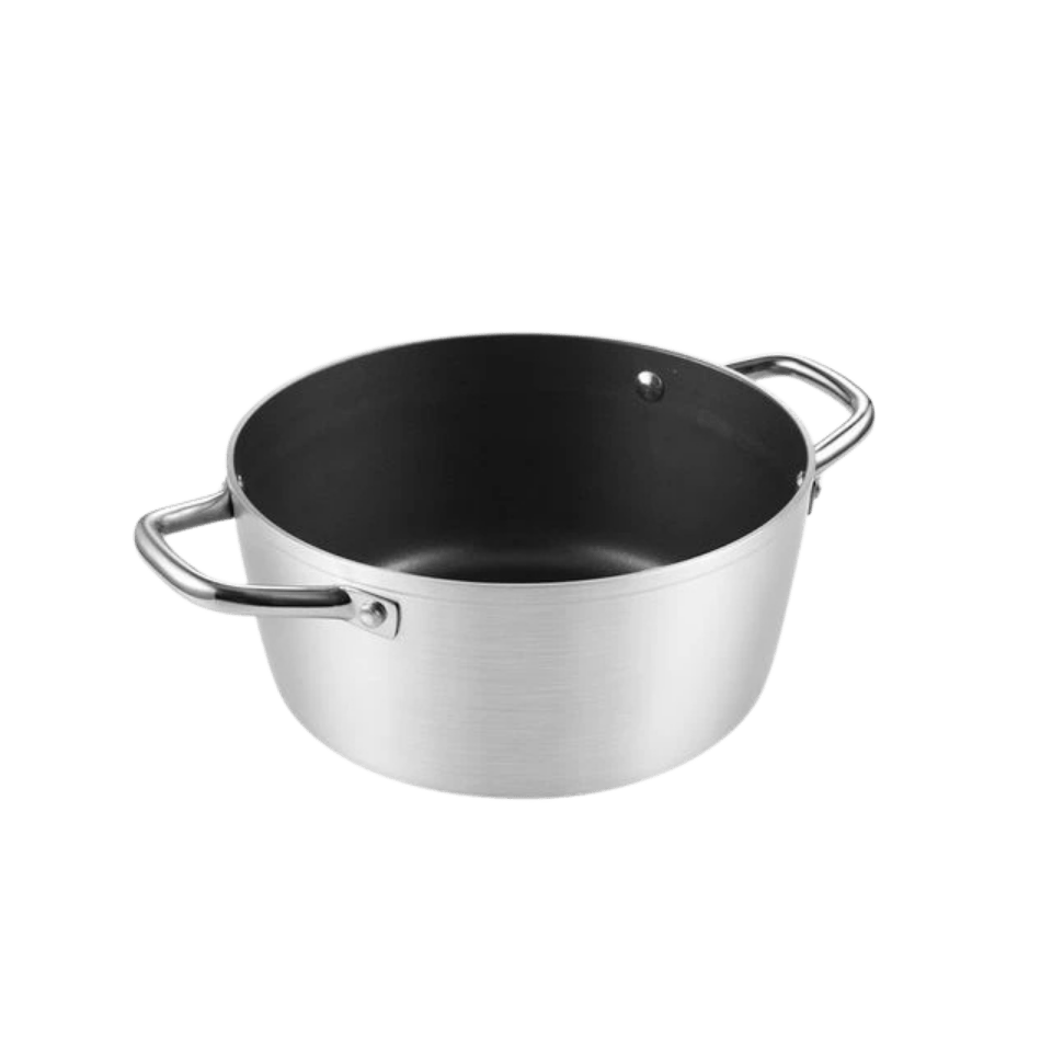 Hergestellt aus langlebiger Aluminiumlegierung mit Antihaftbeschichtung und einem Induktionsboden aus Edelstahl ist er ideal für kleine Portionen Suppen, Soßen oder Ofengerichte. Kompatibel mit allen Herdarten, einschließlich Induktion, und sicher für den Einsatz im Backofen. Große Seitengriffe sorgen für festen und sicheren Halt.
