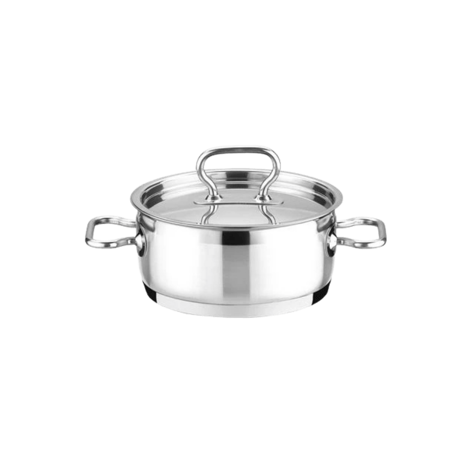 Aus hochwertigem Edelstahl mit extra dickem Sandwichboden für gleichmäßige Wärmeverteilung. Geeignet für alle Herdarten, einschließlich Induktion. Spülmaschinenfest für einfache Pflege.