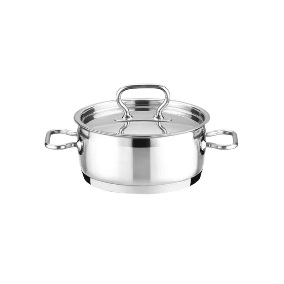 Hergestellt aus hochwertigem Edelstahl mit extra dickem Sandwichboden für gleichmäßige Wärmeverteilung und hervorragende Haltbarkeit. Geeignet für alle Herdarten, einschließlich Induktion. Spülmaschinenfest für einfache Pflege.