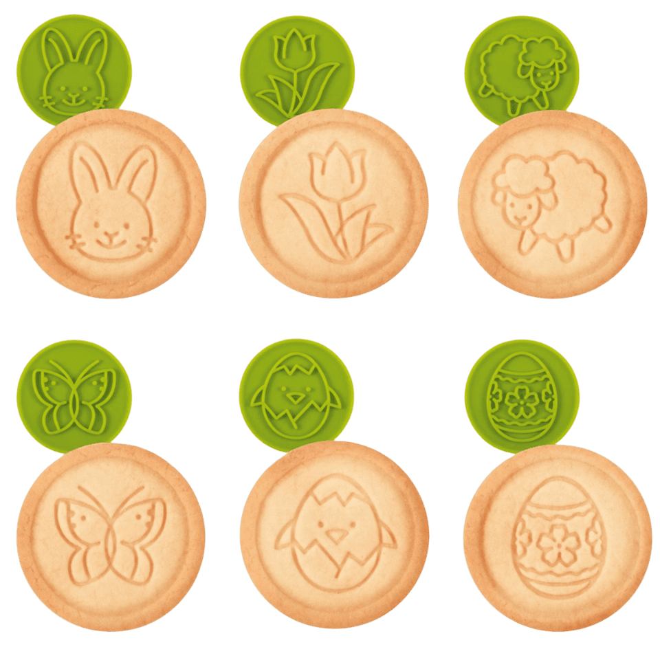 🍪 Enthält 6 austauschbare Stempeldesigns zum Thema Ostern
