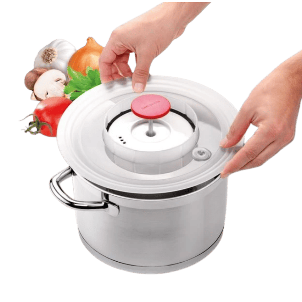 Dieser praktische Deckel ist das perfekte Upgrade für Ihren PRESTO Ham Maker. Er reduziert den Energieverbrauch deutlich und macht den Kochvorgang noch einfacher.