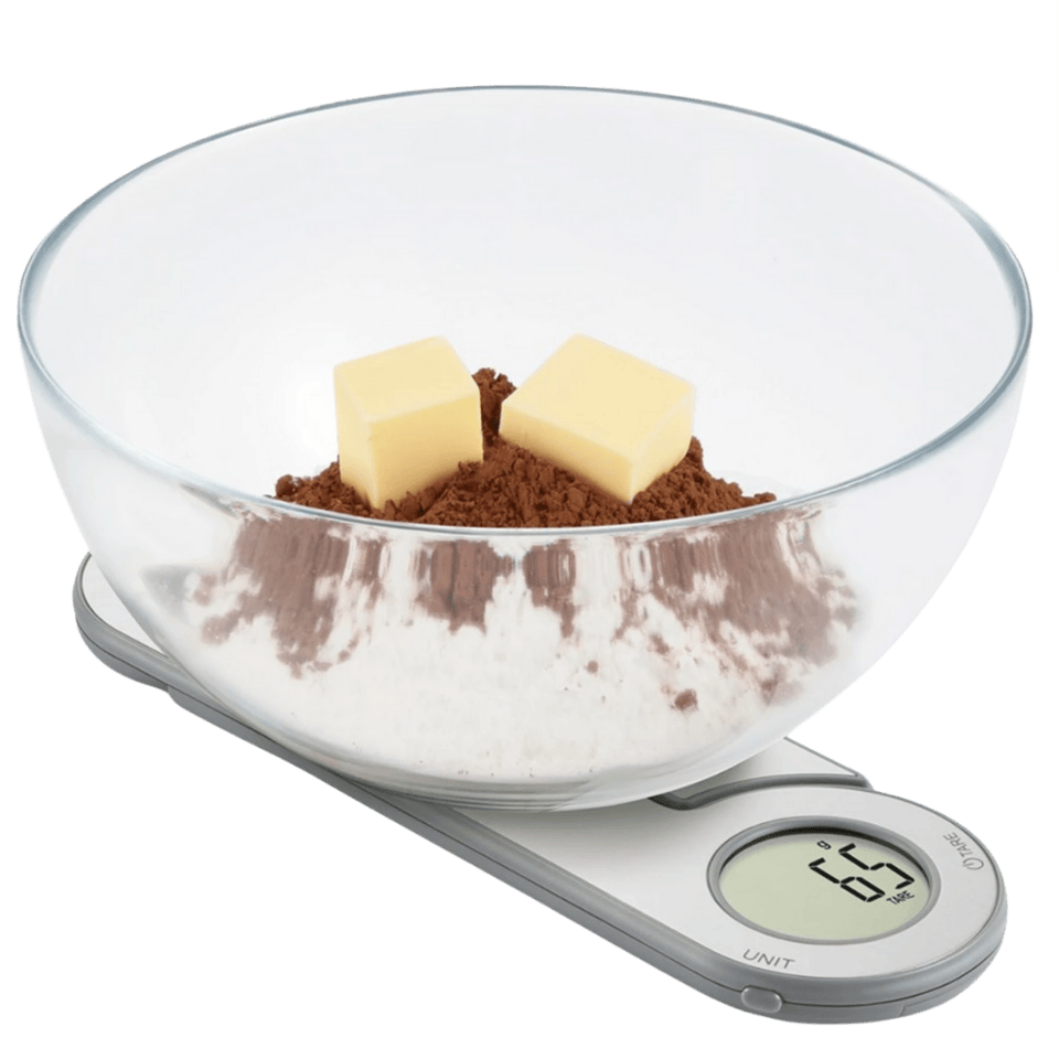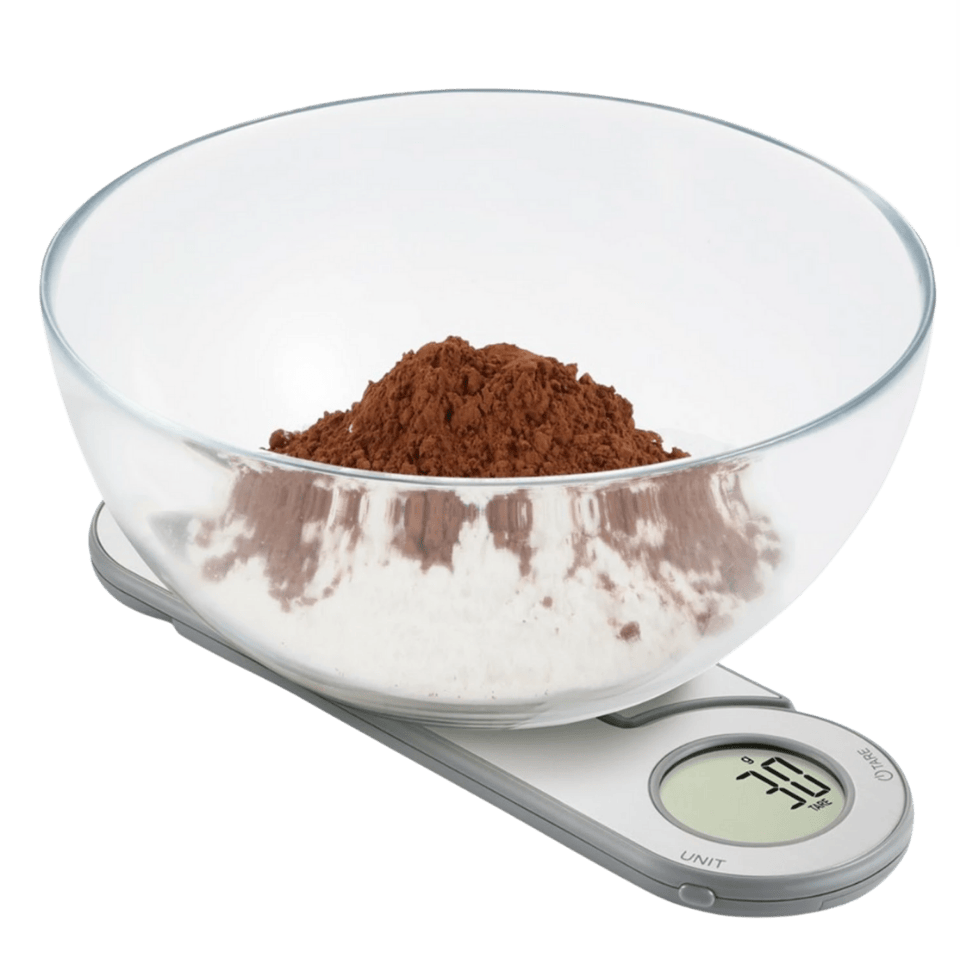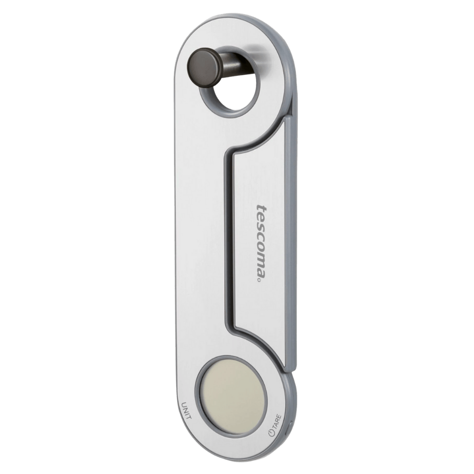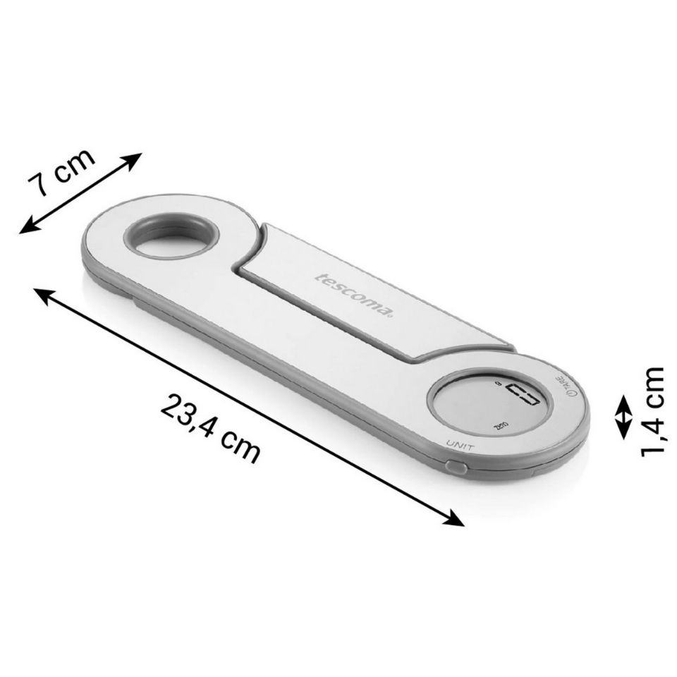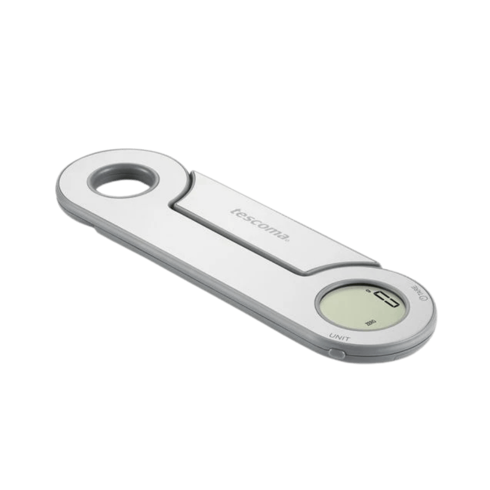 Kompakte und intelligente Waage für präzises Wiegen direkt auf der Oberfläche oder in einer Schüssel – auch im zusammengeklappten Zustand.