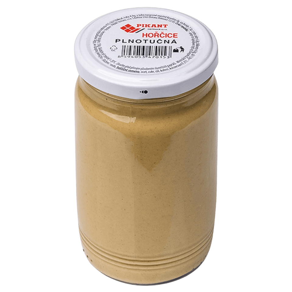 Genießen Sie den reichhaltigen und cremigen Geschmack von Pikant Vollfettsenf, einem traditionellen tschechischen Senf aus fein gemahlenen weißen Senfkörnern, Essig und einer leichten Süße. Seine geschmeidige Textur und sein milder, ausgewogener Geschmack machen ihn zum perfekten Begleiter zu Würstchen, Schnitzeln und gegrilltem Fleisch. Ob als Gewürz, Marinade oder Saucenzutat – dieser vielseitige Senf ist ein Muss in jeder Küche.