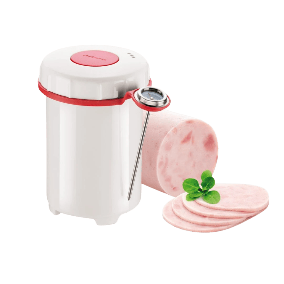 Genießen Sie den echten Geschmack von hausgemachtem Schinken mit diesem modernen, beutellosen Schinkengerät. Inklusive Thermometer, Einsatz für halbe Portionen und Rezeptbroschüre für Schinken, Pastete, Terrinen und mehr.