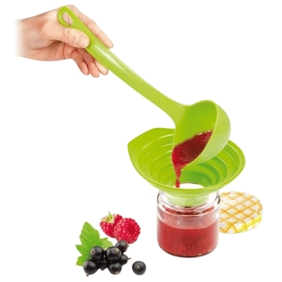 Diese Schöpfkelle ist speziell für das saubere Befüllen von Einmachgläsern geformt und macht das Einmachen zu Hause einfacher als je zuvor.