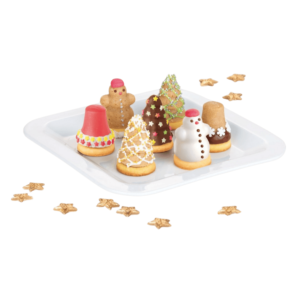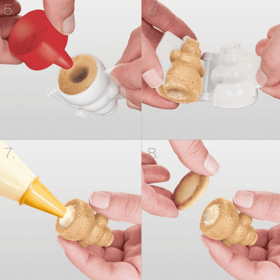 Kreieren Sie unwiderstehliche gefüllte Weihnachtsplätzchen in Form eines Baums, einer Glocke oder eines Schneemanns! Mit diesen Formen gelingen Ihnen ganz einfach süße Leckereien mit cremiger Füllung, die Sie nicht backen müssen.