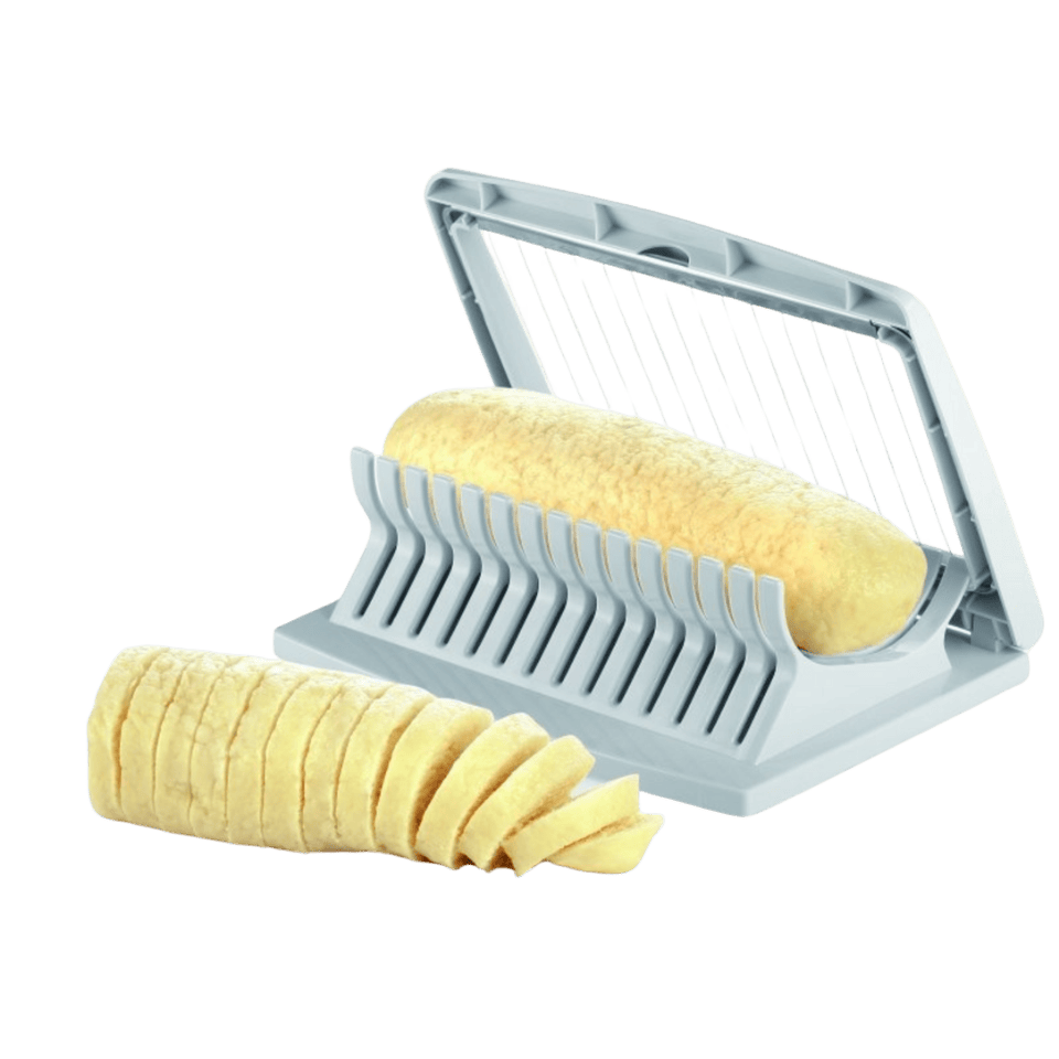 Schneiden Sie Dampfnudeln, süße Rouladen, Pastete, Mozzarella, Blätterteig oder Bananen mühelos und mit perfekter Präzision. Inklusive herausnehmbarer Auffangschale zum Auffangen von Krümeln und anderen Verschmutzungen.