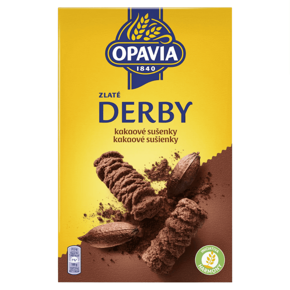 Genießen Sie den vollen Kakaogeschmack der Opavia Zlaté Derby Kekse. Diese knusprigen und köstlichen Kakaokekse werden mit 5 % fettreduziertem Kakaopulver hergestellt und bieten einen perfekt ausgewogenen Geschmack. Ideal als süßer Snack, zum Kaffee oder zum Teilen mit Familie und Freunden.