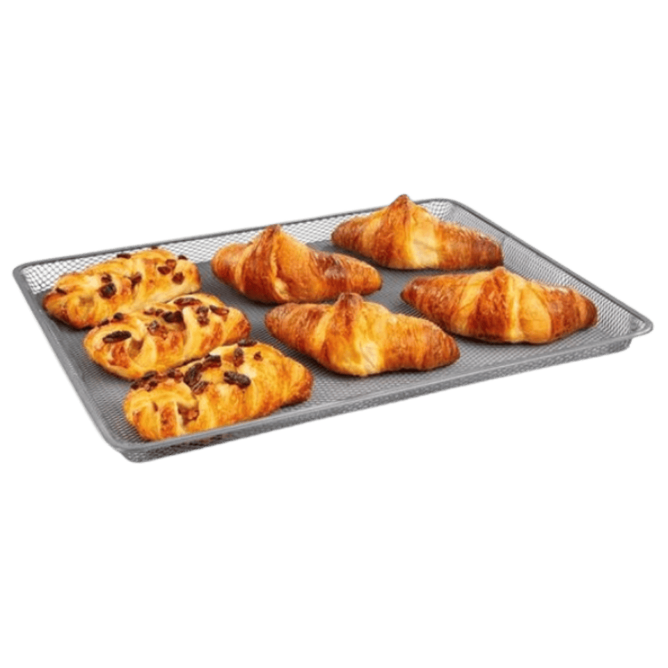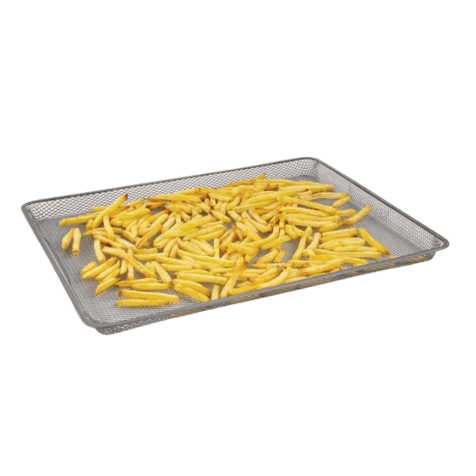 Dieses perforierte Backblech ermöglicht eine freie Zirkulation der heißen Luft und ist daher ideal für knusprige Pommes, geröstetes Gemüse und goldbraunes Gebäck.