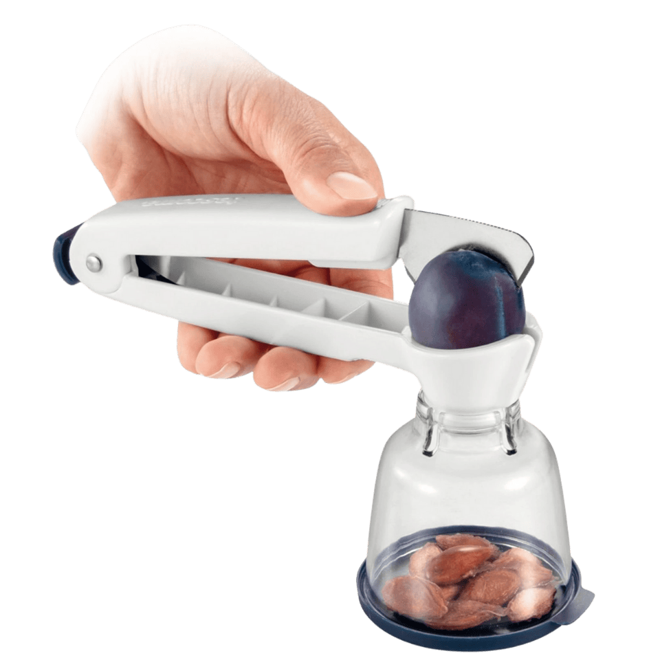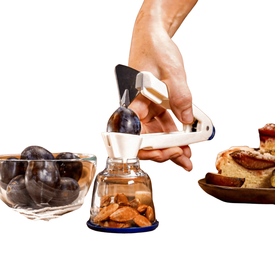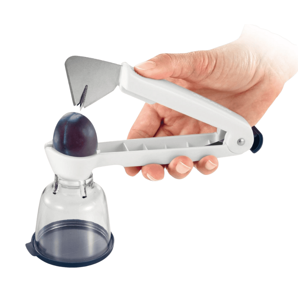 Entkernen und halbieren Sie Pflaumen in einer einzigen Bewegung – perfekt für Marmelade, Desserts oder zum Einfrieren.