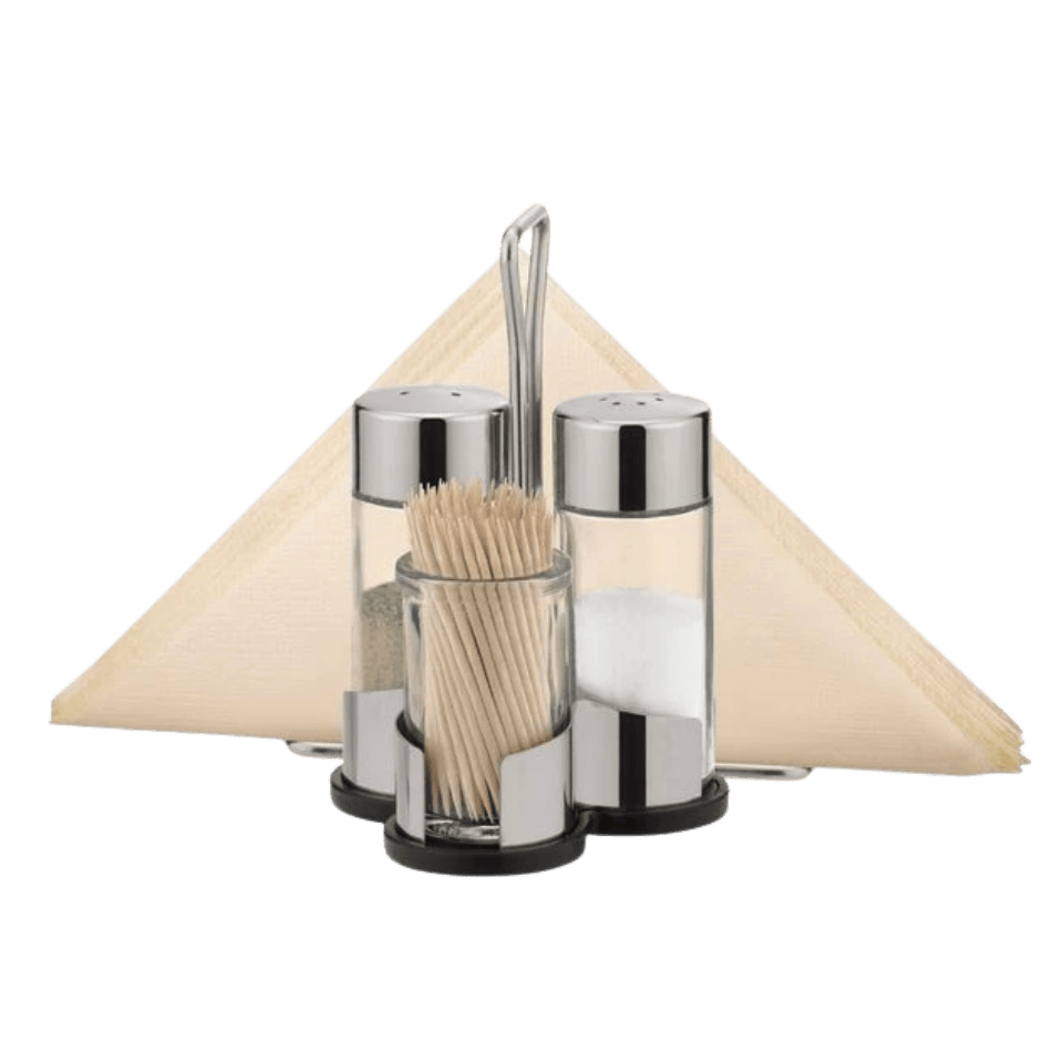 🍽️ Inklusive Halter für Salz, Pfeffer, Zahnstocher und Servietten