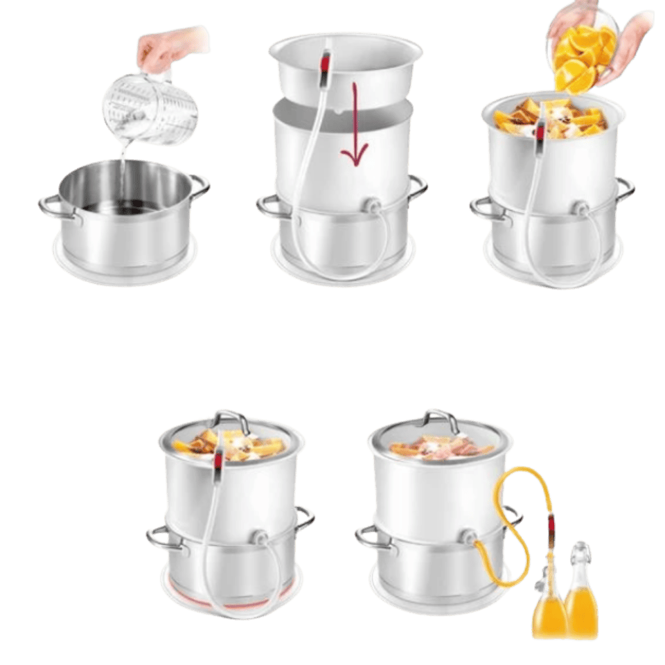 Verwandeln Sie Ihren normalen Topf in einen Dampfentsafter und genießen Sie natürliche Fruchtsirupe, Gelees und Säfte aus Ihren Lieblingsprodukten.